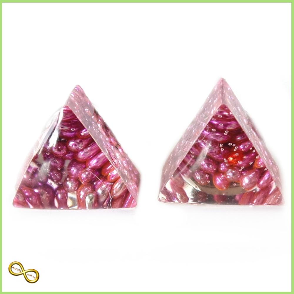 Náušnice se zalitými kuličkami ve fialové barvě. Náušnice typu pecky z křišťálové pryskyřice a kovových částí z chirurgické oceli. Vypadnutí náušnic brání silikonová zarážka. Náušnice jsou ručně vyrobeny.