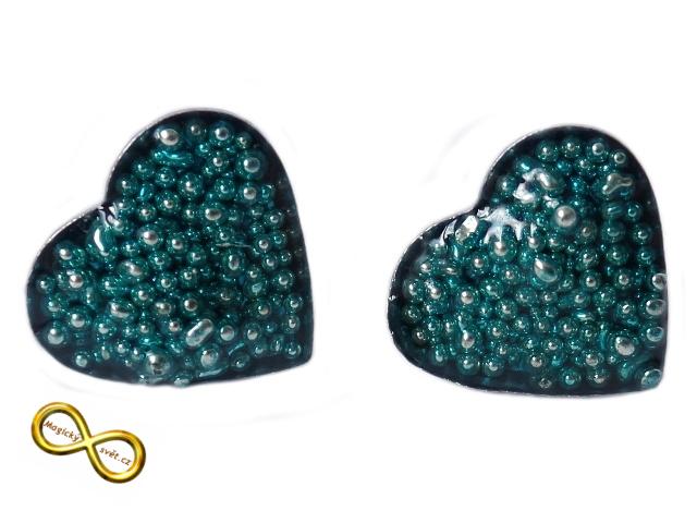 Náušnice srdce kuličkové modré