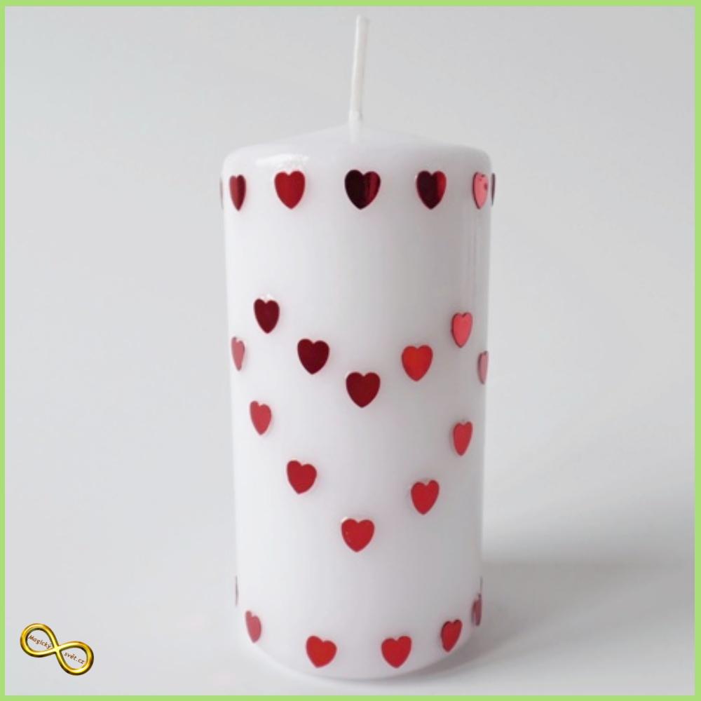 Svíčka střední bílá s červenými srdíčky