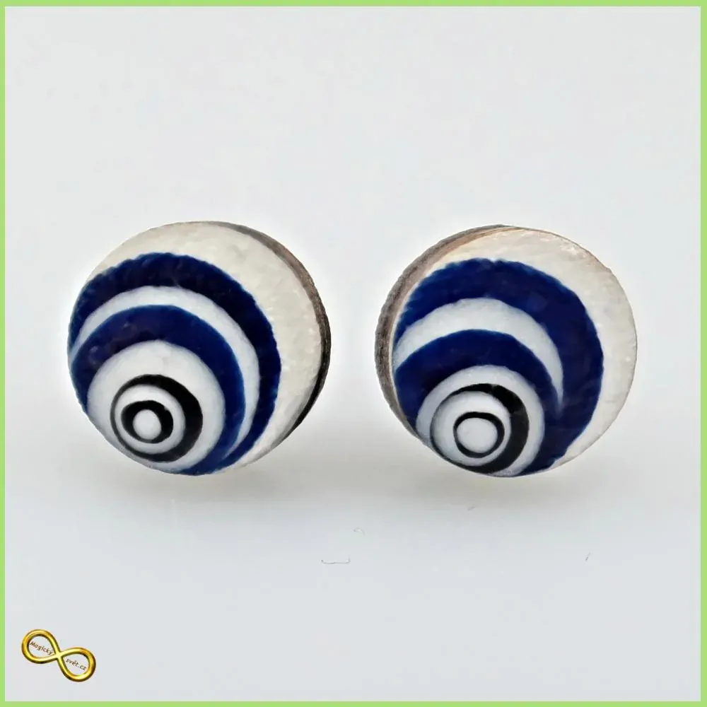 Dřevěné ručně malované bílomodré náušnice typu "pecky" s nerezovou ocelí a silikonovou zarážkou, aby vám nespadly. Náušnice jsou velmi lehké a příjemné na nošení. Malba je ošetřena lakem proti poškození, ale i tak nedoporučujeme s náušnicemi se koupat či sprchovat, aby dřevo na vodu nereagovalo.